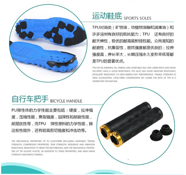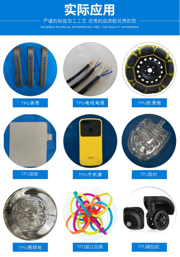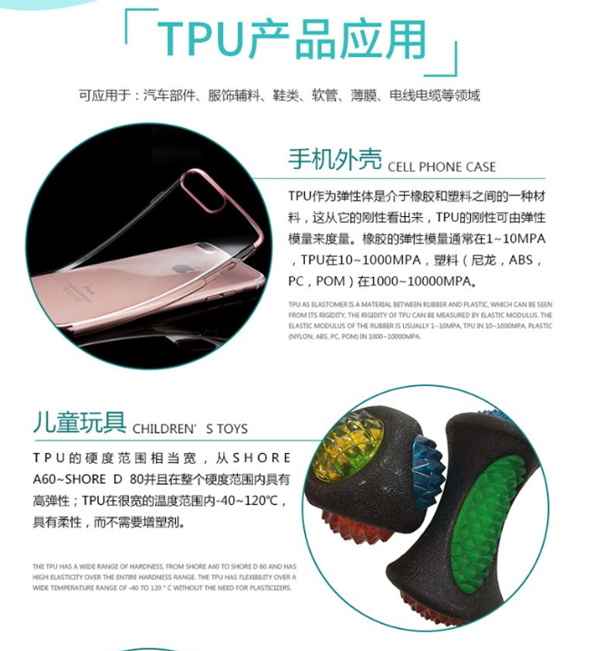 透明的热塑性聚酯-聚氨酯,具有优异的机械性能和耐磨性,良好的阻尼特性和高回弹性能。