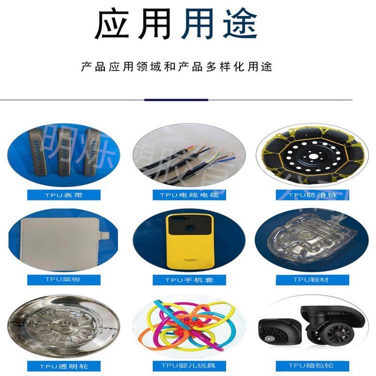 TPU有非常好的耐低温性能,通常能达到-50℃,可取代一般PVC因低温脆化而无法应用的各个领域,特别适合用在寒带相关的种类制品。