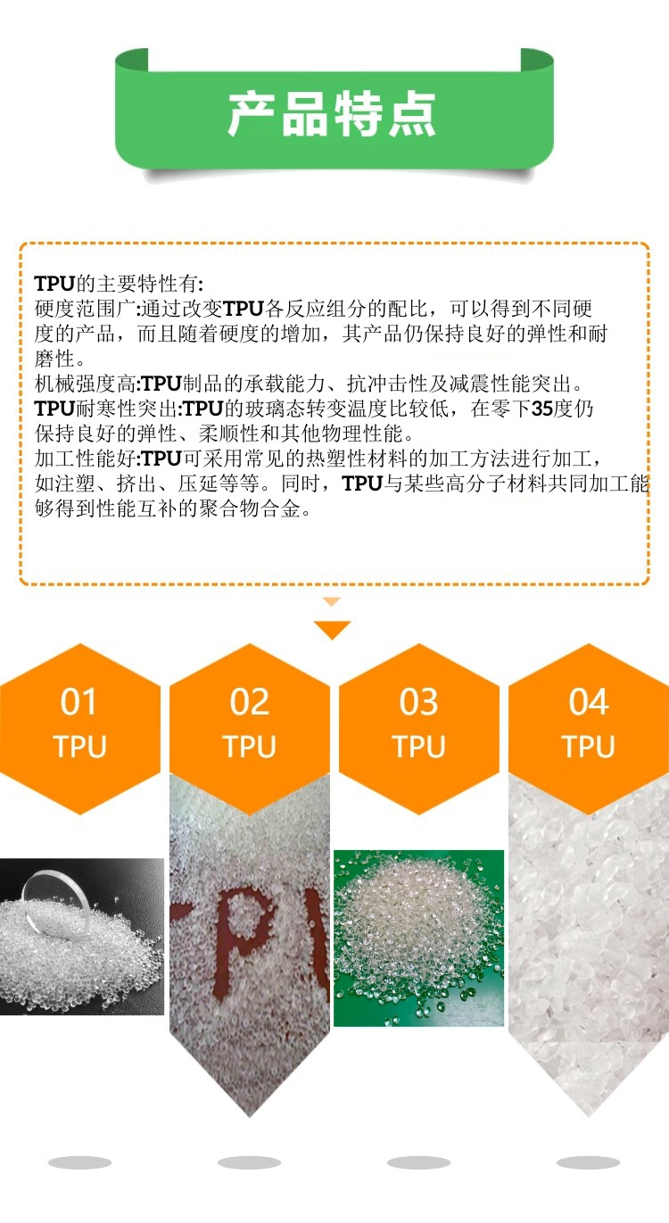产品说明:具有 耐水解、低温柔韧性及抗微生物性能的热塑性聚醚聚氨酯弹性体。