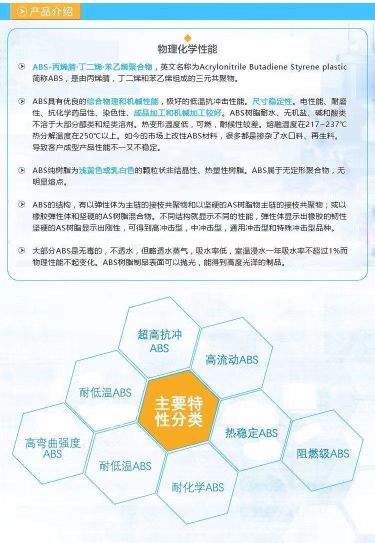 | 特性级别 | 阻燃级|||耐低温|||抗紫外线|||高流动|||高抗冲|||高光泽||| |