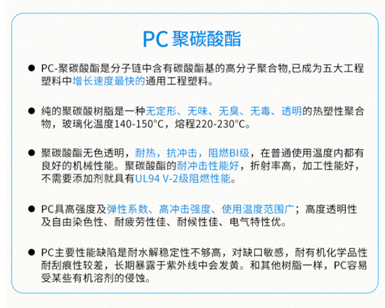 | TARFLON IVY2200R | PC | 抗紫外线性能良好;阻燃性 |