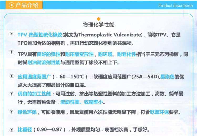 | 耐候与耐温性 | 耐热、耐低温,具备优异的抗老化性能和耐候性。 | 汽车保险杠、密封条、电线电缆 |