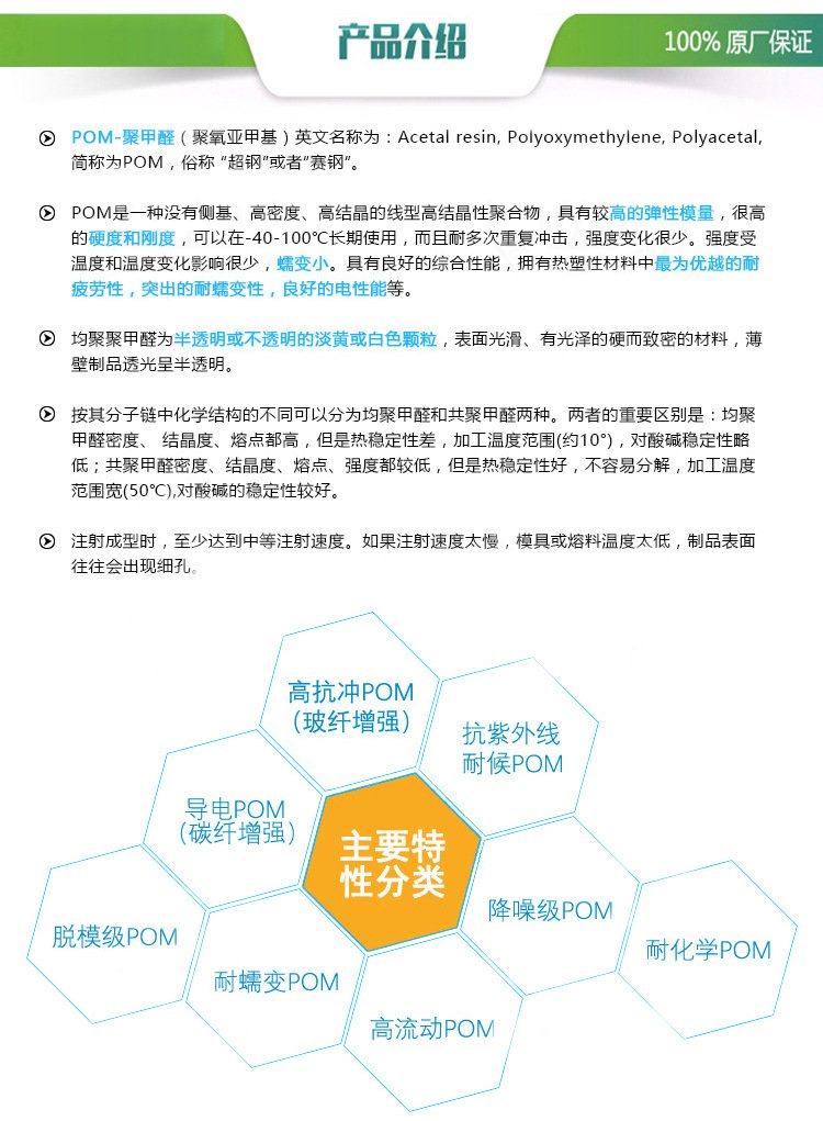 | 机械性能 | 耐疲劳、耐蠕变,23°C简支梁缺口冲击强度7.0kJ/m2,-30°C时仍达4.5kJ/m2 | |