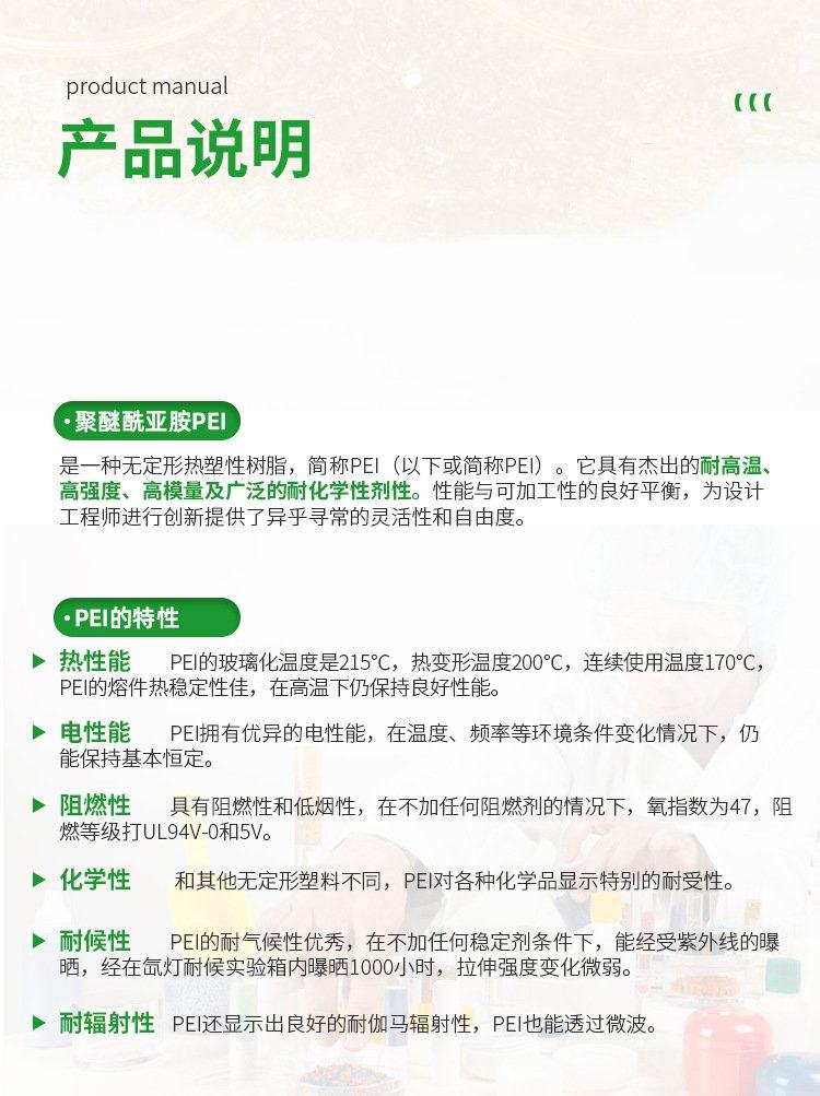 | 增强方式 | 10% 玻璃纤维填充,标准流动聚醚酰亚胺 |